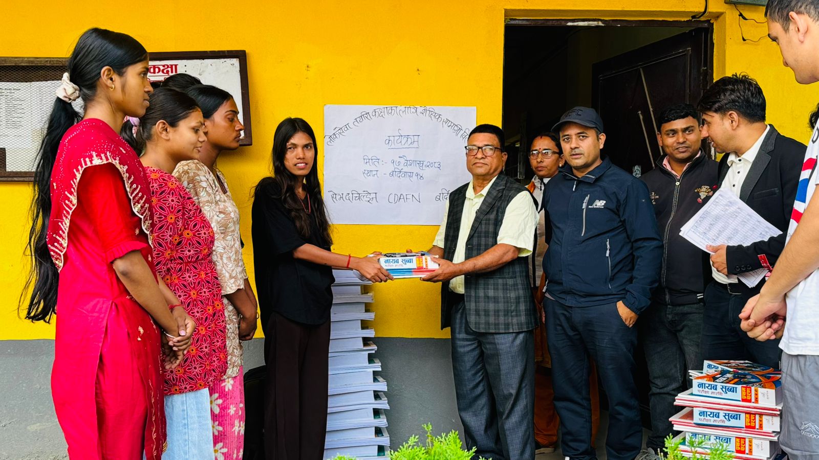 During the distribution event, CDAFN Vice President Som Bahadur Karki, Bardibas Municipality representative Pawan Kumar Karki, and instructor Dipesh Kafle jointly handed over the materials. Speaking at the event, Vice President Karki encouraged the participants to pursue their studies with dedication, perseverance, and self-confidence, while extending his best wishes for their bright future.