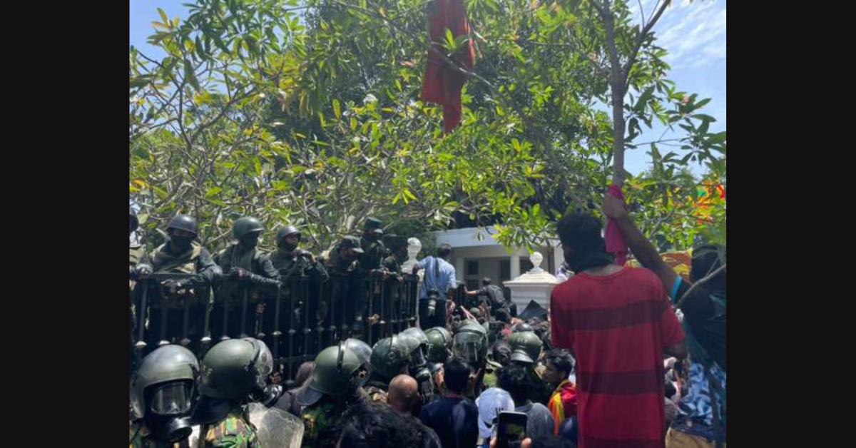 श्रीलङ्कामा संकटकाल घोषणा, प्रधानमन्त्री कार्यालयको गेट भत्काउँदै प्रदर्शनकारी